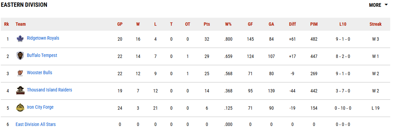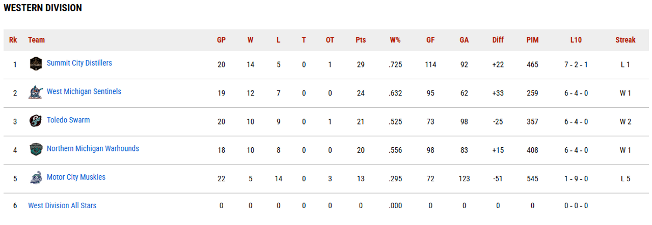 Across the regular season, clubs such as Ridgetown, Buffalo, Summit, and West Michigan remain among the leaders in the 2025-26 standings race, while a competitive middle tier continues to keep playoff positioning fluid heading into the late-season schedule.